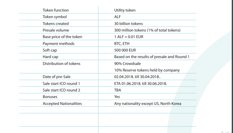 The Aeternum token details are sleek and unique as all token details function in phases and rounds. The Pre-sale offers one(1) ALF =0.01 EUR with a hardcap of 3,000,000 EUR. Furthermore, The Round one offers one (1) ALF =0.02 EUR which will start from 01.10.2018 -01.11.2018, with its smart city phase two (2) completed generally. Hence more details should be checked at www.aeternum.io.