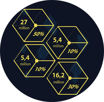 In total, 1.802.500.000 tokens will be launched during ICO Kryptobits. Of these, 1.442 million will go on sale. The rest will be distributed between a team of developers, economic and legal consultants. Unsold tokens will be burned, in the future they will not shrink further, therefore, their price will only grow with time.